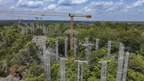 In a patch of mature rainforest in the heart of the Amazon near Manaus, Brazil, researchers are pumping predicted future atmospheric levels of CO2 over the trees using the same Face technology as in Staffordshire. They hope to better understand how the world’s largest rainforest will respond to climate change.
